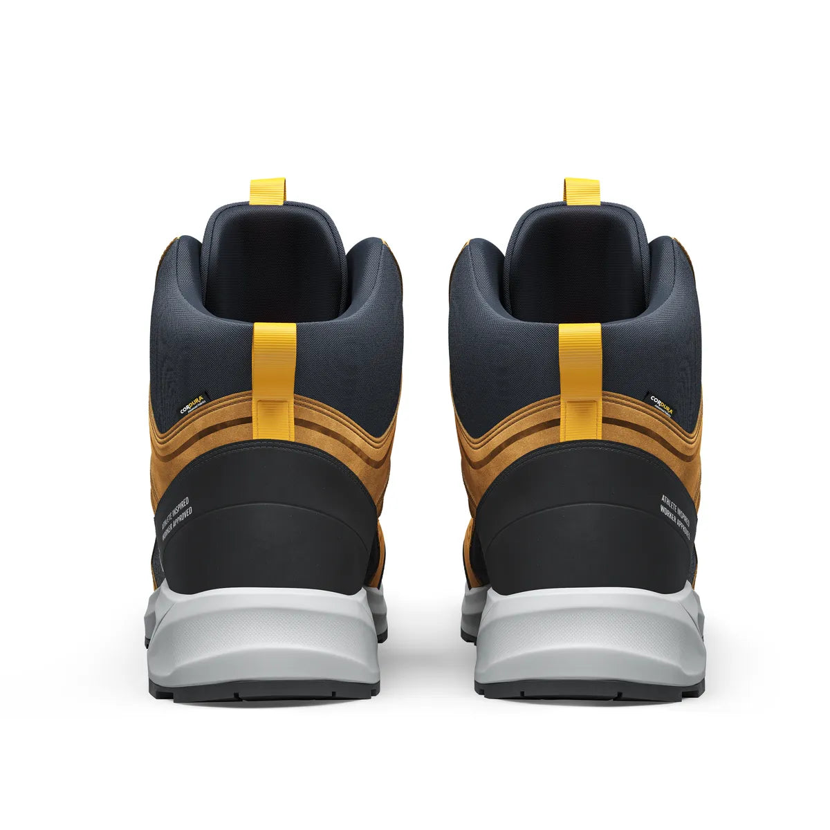 Botte de sécurité sportive offrant un confort intégral. Tige en cuir LWG finitions nubuck, et tissu CORDURA® pour plus de respirabilité et de légèreté. Doublure recyclée évacuant l’humidité pour un plus grand confort des pieds. Semelle intérieure en mousse PU. Semelle intermédiaire légère en EVA avec cambrion intégré. Semelle extérieure en caoutchouc antidérapant et résistant à l’huile pour une adhérence exceptionnelle. Conception totalement exempte de métal, avec coque de protection en fibre de verre et protection souple contre les risques de perforation.