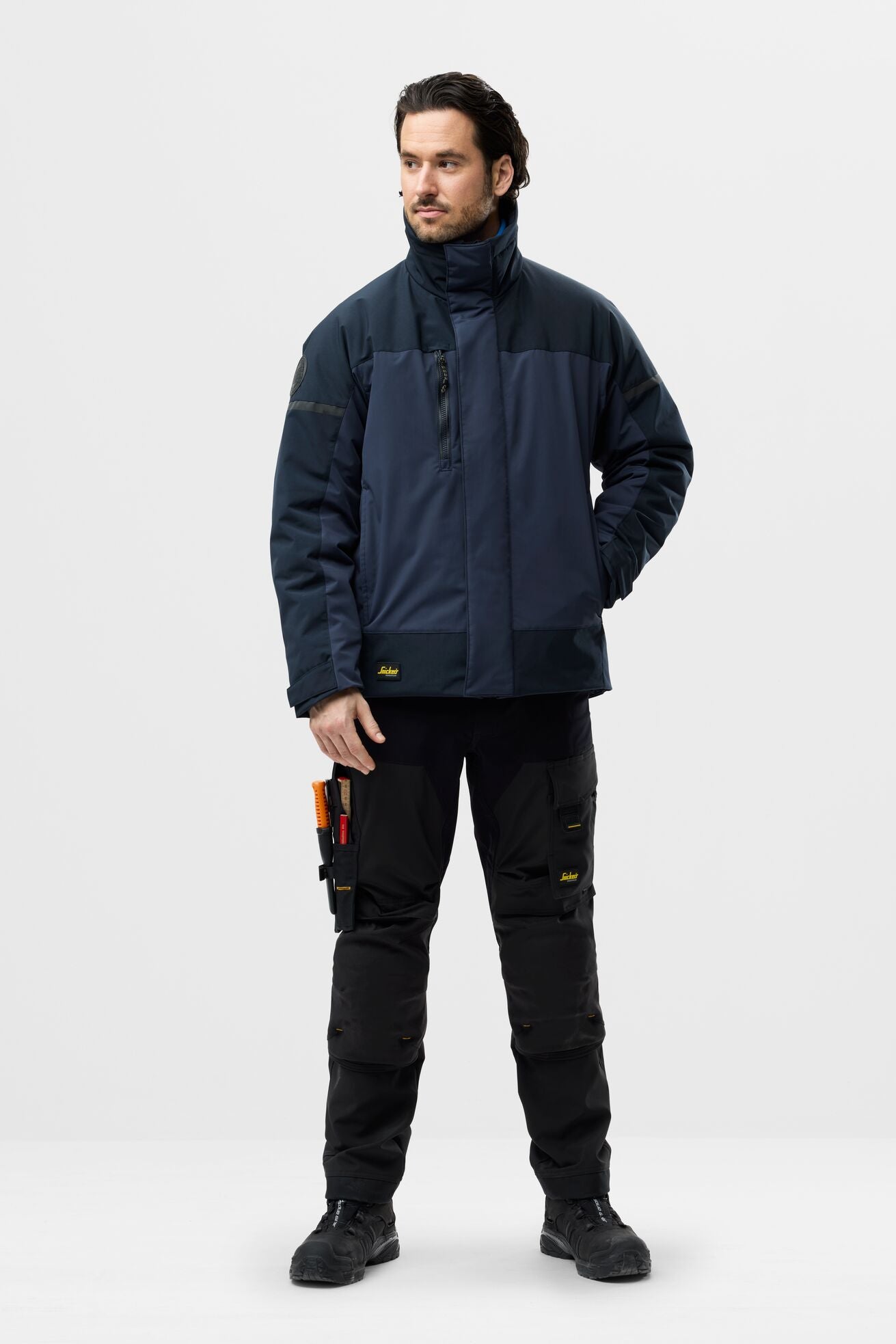 Une veste isolante déperlante fabriquée en tissu laminé. Renforts en CORDURA® pour la durabilité, détails réfléchissants pour la sécurité et pochette de rangement pour les appareils mobiles. Personnalisable.