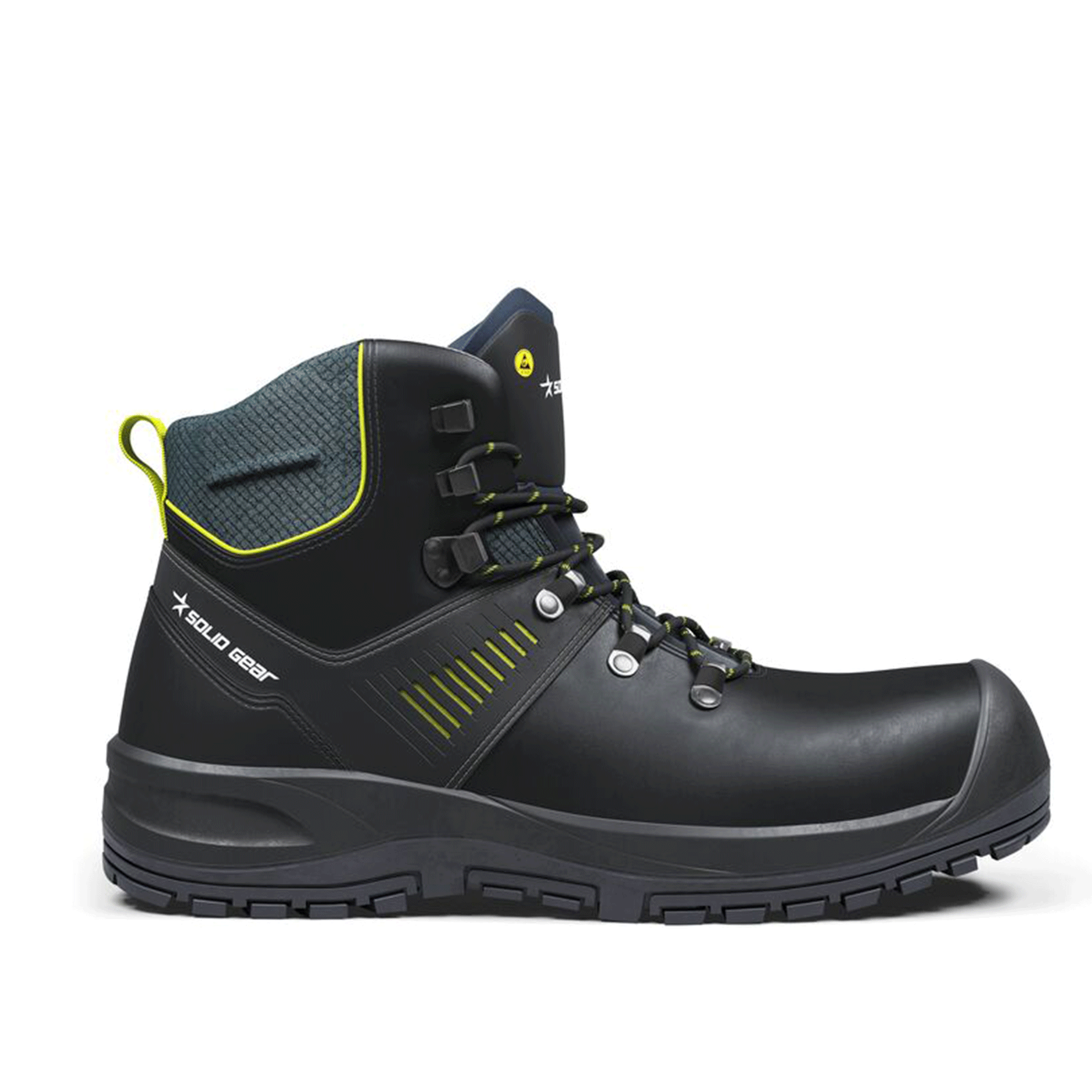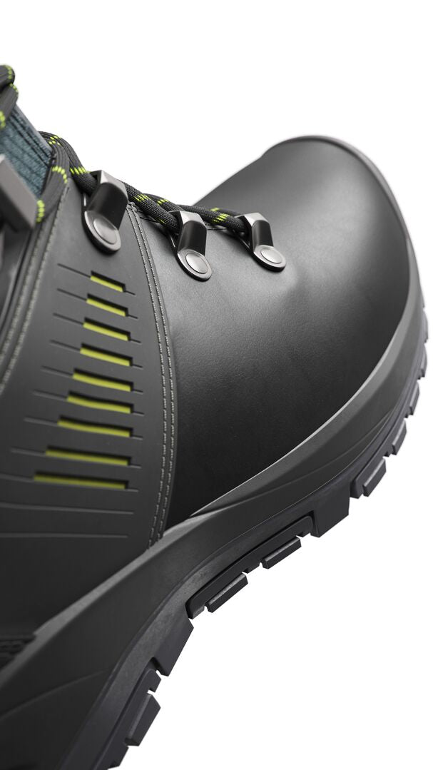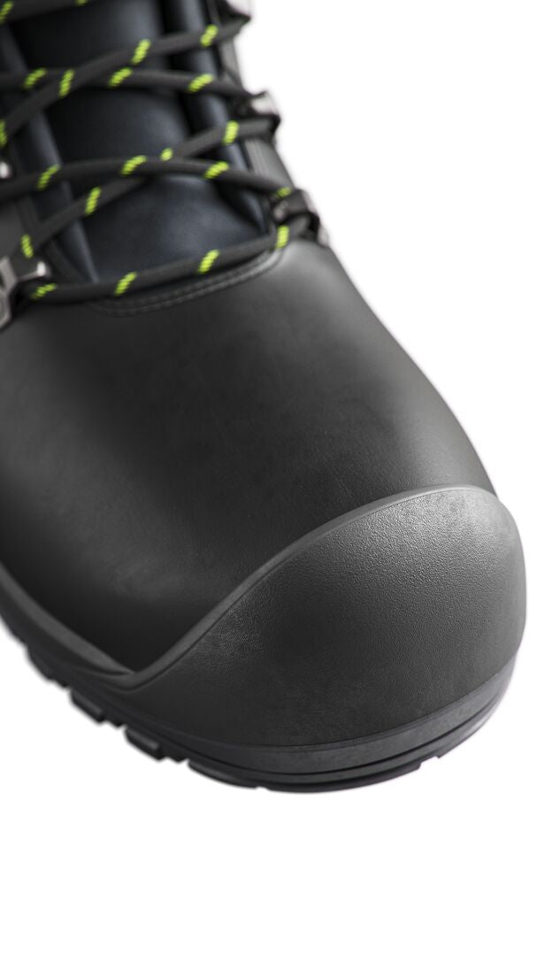 Tige en cuir LWG avec finitions de qualité et polyester pour une excellente durabilité. Doublure recyclée et transportant l'humidité pour vous procurer un climat meilleur confort thermique de vos pieds. Semelle intérieure en mousse PU à cellules ouvertes, amortissante et respirante. Semelle intermédiaire stable en PU avec tige en nylon intégrée. Semelle extérieure en caoutchouc résistant à l'huile, au glissement et à la chaleur, conçue pour une grande durabilité et une excellente adhérence. Coque de protection en fibre de verre et protection souple contre les risques de perforation.