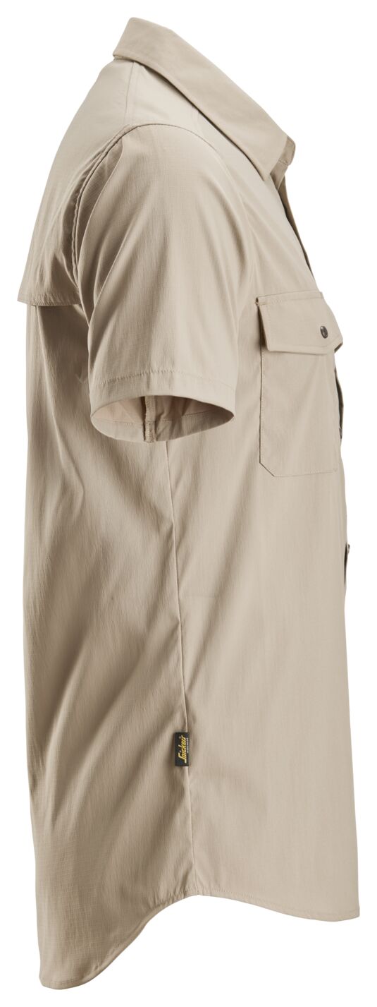Chemise à manches courtes extensible, légère et respirante offrant une protection solaire UPF 50+. Conçue pour les artisans qui travaillent à l’extérieur pendant de longues heures.