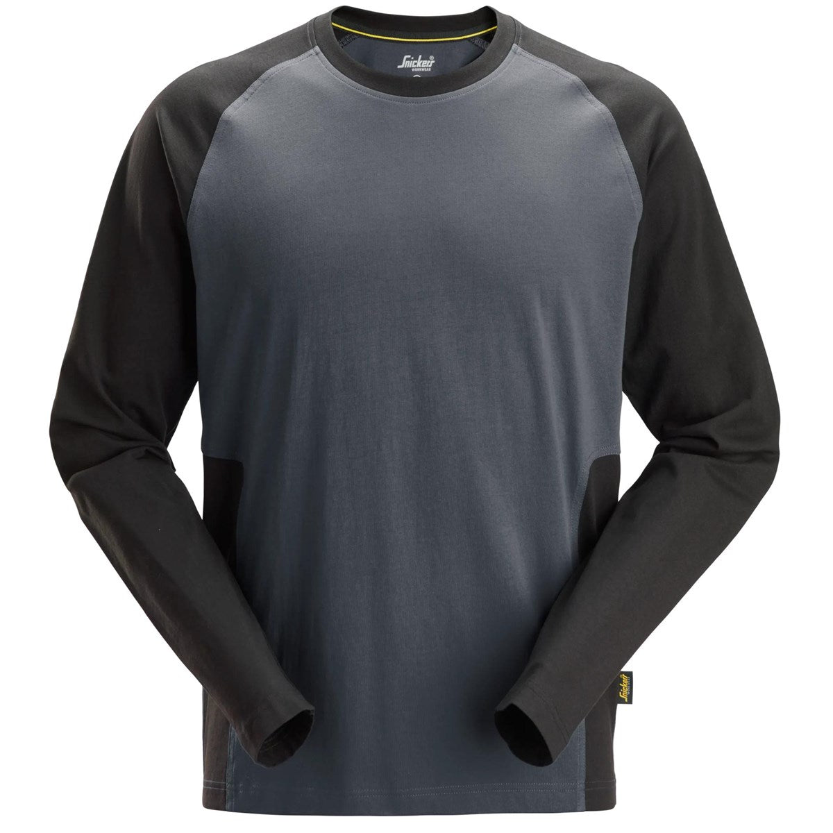 T-shirt classique à manches longues en coton, alliant confort et design bicolore. Idéal pour une utilisation en uniforme, avec beaucoup d’espace pour le profilage.